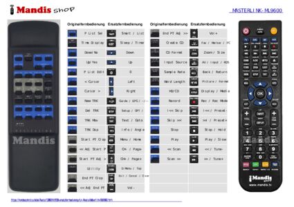 Ein Dokument ist enthalten, um die Verwendung der neuen Fernbedienung zu erleichtern, indem es die Tastenbelegung zeigt.