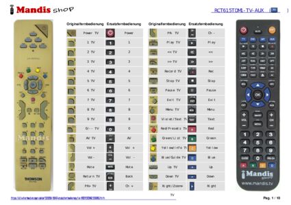 Ein Dokument ist enthalten, um die Verwendung der neuen Fernbedienung zu erleichtern, indem es die Tastenbelegung zeigt.