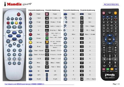 Ein Dokument ist enthalten, um die Verwendung der neuen Fernbedienung zu erleichtern, indem es die Tastenbelegung zeigt.