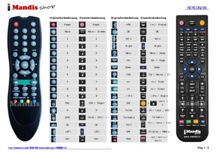 Ein Dokument ist enthalten, um die Verwendung der neuen Fernbedienung zu erleichtern, indem es die Tastenbelegung zeigt.