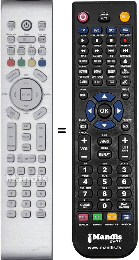 Es handelt sich jedoch nicht um eine Universalfernbedienung sondern um eine Fernbedienung die das Original ersetzt.