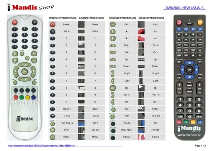 Ein Dokument ist enthalten, um die Verwendung der neuen Fernbedienung zu erleichtern, indem es die Tastenbelegung zeigt.