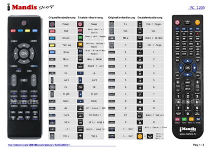 Ein Dokument ist enthalten, um die Verwendung der neuen Fernbedienung zu erleichtern, indem es die Tastenbelegung zeigt.