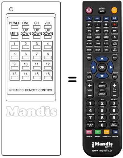 Fernbedienung, die das Original und die Gesamtheit seiner Funktionen, vollständig ersetzt. Es handelt sich jedoch nicht um eine Universalfernbedienung sondern um eine Fernbedienung die das Original ersetzt. Sie erhalten eine nach Einlegen der Batterien sofort einsatzbereite Fernbedienung. Jegliches Programmieren entfällt. Wir geben umfassende Garantie dafür, dass diese Fernbedienung alle Funktionen der Originalfernbedienung erfüllt.