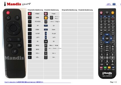 Diese Fernbedienung ersetzt Ihre GT1 in vollem Umfang und bietet alle Funktionen des Originals.