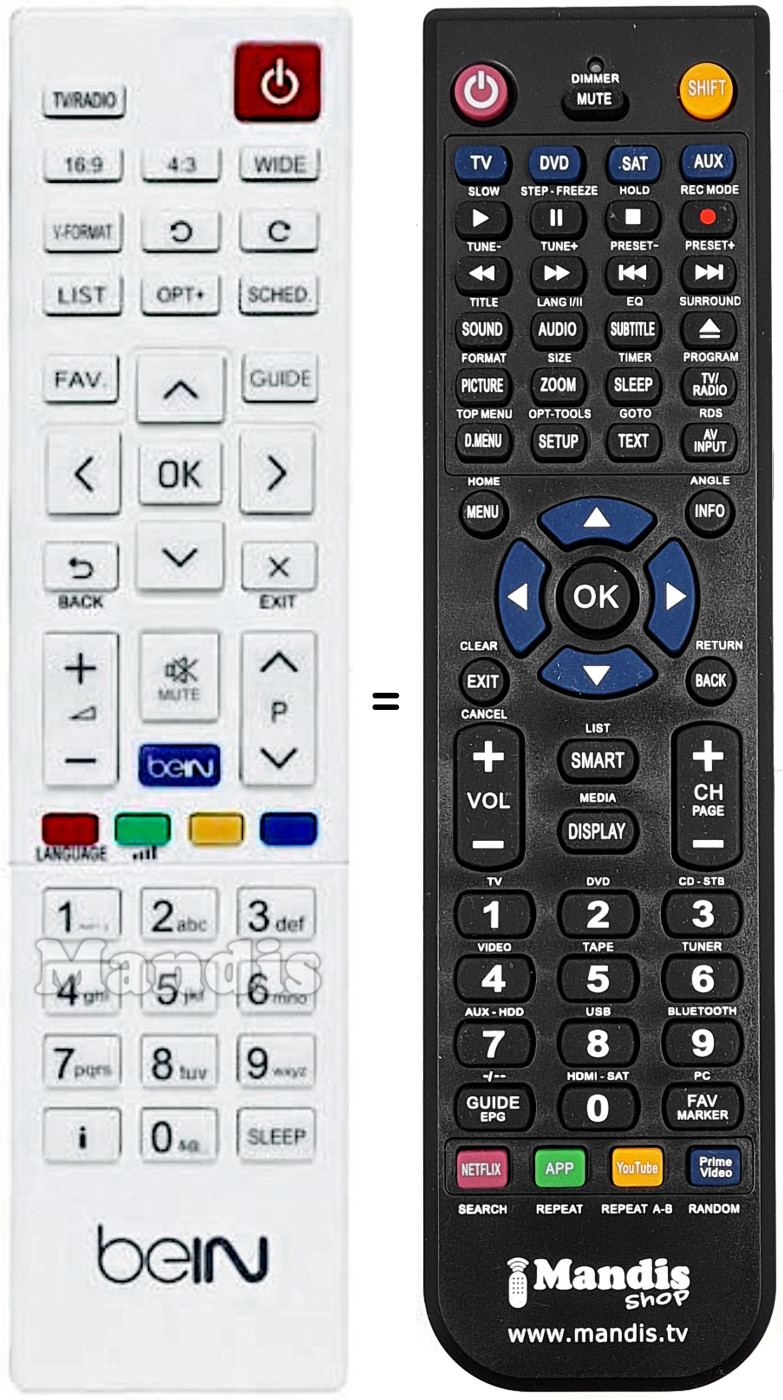 Es handelt sich jedoch nicht um eine Universalfernbedienung sondern um eine Fernbedienung die das Original ersetzt.