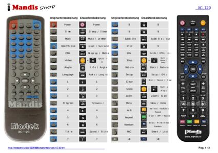 Diese Fernbedienung ersetzt Ihre XC-120 in vollem Umfang und bietet alle Funktionen des Originals.
