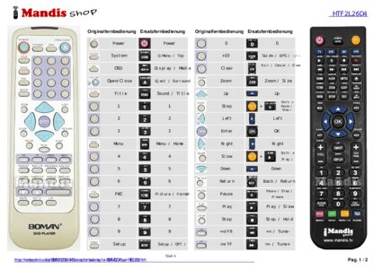 Diese Fernbedienung ersetzt Ihre DVD Player (HTF2L26D4) in vollem Umfang und bietet alle Funktionen des Originals.
