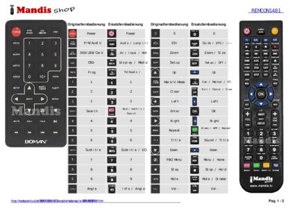 Diese Fernbedienung ersetzt Ihre REMCON1481 in vollem Umfang und bietet alle Funktionen des Originals.