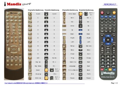 Ein Dokument ist enthalten, um die Verwendung der neuen Fernbedienung zu erleichtern, indem es die Tastenbelegung zeigt.