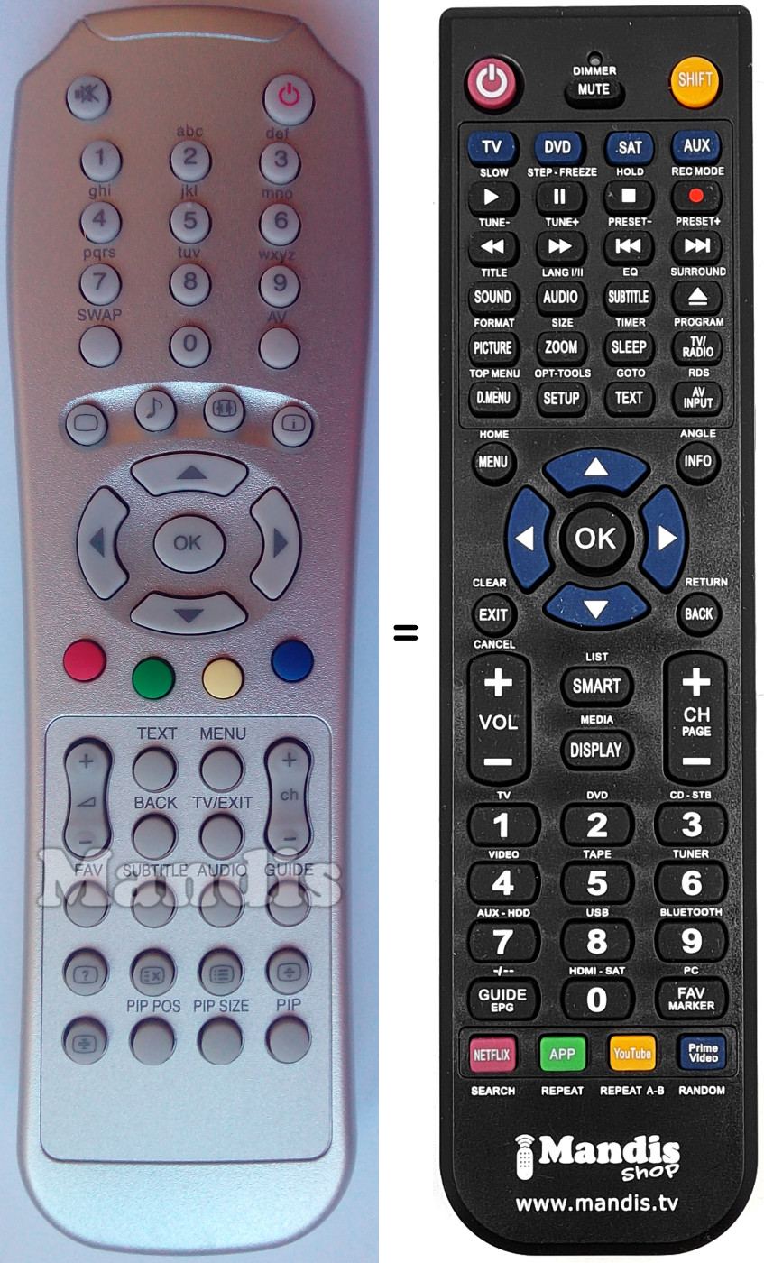 Es handelt sich jedoch nicht um eine Universalfernbedienung sondern um eine Fernbedienung die das Original ersetzt.