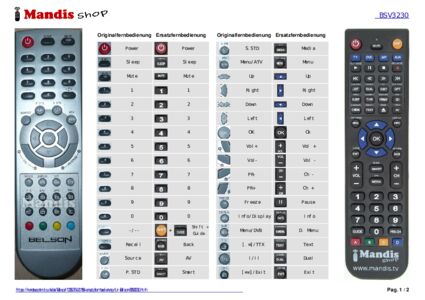 Home > Marken > Fernbedienungen Belson > Fernbedienung für Belson BSV3230