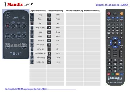 Ein Dokument ist enthalten, um die Verwendung der neuen Fernbedienung zu erleichtern, indem es die Tastenbelegung zeigt.
