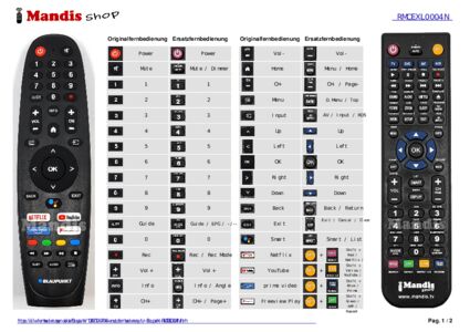 Ein Dokument ist enthalten, um die Verwendung der neuen Fernbedienung zu erleichtern, indem es die Tastenbelegung zeigt.