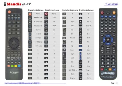 Diese Fernbedienung ersetzt Ihre TLXI2470HD in vollem Umfang und bietet alle Funktionen des Originals.
