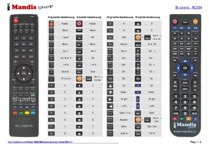 Ein Dokument ist enthalten, um die Verwendung der neuen Fernbedienung zu erleichtern, indem es die Tastenbelegung zeigt.