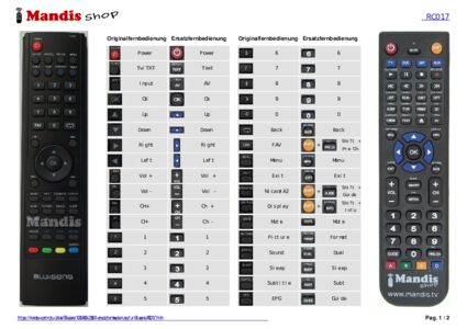 Ein Dokument ist enthalten, um die Verwendung der neuen Fernbedienung zu erleichtern, indem es die Tastenbelegung zeigt.