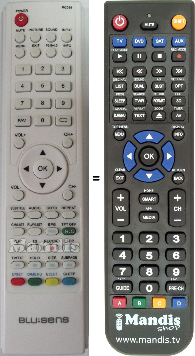 Diese Fernbedienung ersetzt Ihre RC036-2 in vollem Umfang und bietet alle Funktionen des Originals.