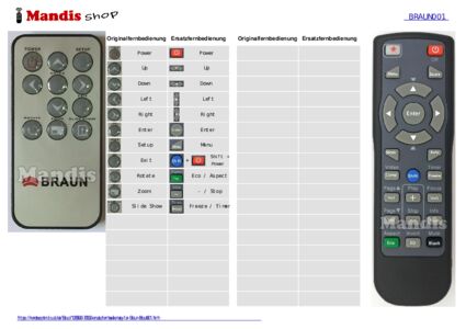 Ein Dokument ist enthalten, um die Verwendung der neuen Fernbedienung zu erleichtern, indem es die Tastenbelegung zeigt.