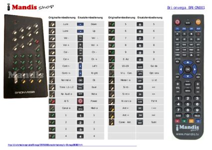 Ein Dokument ist enthalten, um die Verwendung der neuen Fernbedienung zu erleichtern, indem es die Tastenbelegung zeigt.