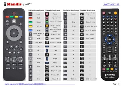Ein Dokument ist enthalten, um die Verwendung der neuen Fernbedienung zu erleichtern, indem es die Tastenbelegung zeigt.