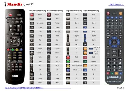 Home > Marken > Fernbedienungen CGV > Fernbedienung für CGV REMCON1151