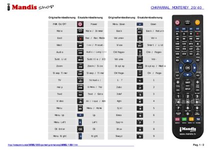 Ein Dokument ist enthalten, um die Verwendung der neuen Fernbedienung zu erleichtern, indem es die Tastenbelegung zeigt.