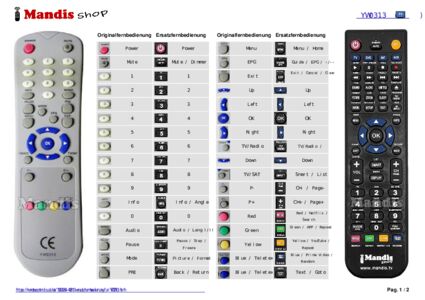 Ein Dokument ist enthalten, um die Verwendung der neuen Fernbedienung zu erleichtern, indem es die Tastenbelegung zeigt.