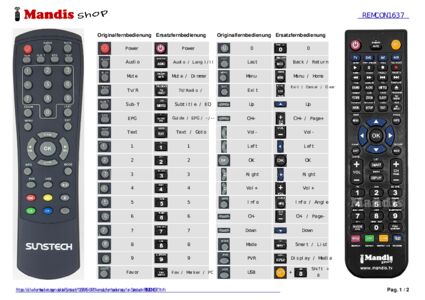 Ein Dokument ist enthalten, um die Verwendung der neuen Fernbedienung zu erleichtern, indem es die Tastenbelegung zeigt.