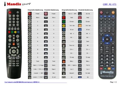 Home > Marken > Fernbedienungen COBY > Fernbedienung für COBY RC073