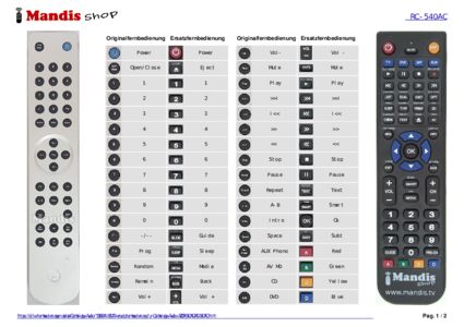 Ein Dokument ist enthalten, um die Verwendung der neuen Fernbedienung zu erleichtern, indem es die Tastenbelegung zeigt.