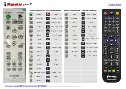 Im Folgenden zeigen wir Ihnen die Zuordnung jedes einzelnen Knopfes der Originalfernbedienung zu der Taste, die dieselbe Funktion auf der Ersatzfernbedienung ausführt. In einigen Fällen müssen Sie möglicherweise die UMSCHALT-Taste drücken, bevor Sie eine andere Taste drücken, um bestimmte Aktionen auszuführen. Diese zusätzlichen Funktionen werden oft wenig genutzt und dienen dazu, das Verständnis der Ersatzfernbedienung zu erleichtern oder weil die Originalfernbedienung mehr Tasten hat als das entsprechende Modell.