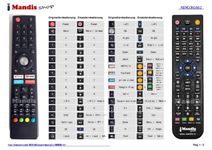 Ein Dokument ist enthalten, um die Verwendung der neuen Fernbedienung zu erleichtern, indem es die Tastenbelegung zeigt.