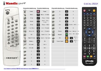 Fernbedienung für CROSLEY AUTORAMA (CR 2314)