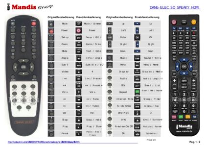 Ein Dokument ist enthalten, um die Verwendung der neuen Fernbedienung zu erleichtern, indem es die Tastenbelegung zeigt.