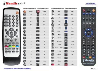 Ein Dokument ist enthalten, um die Verwendung der neuen Fernbedienung zu erleichtern, indem es die Tastenbelegung zeigt.