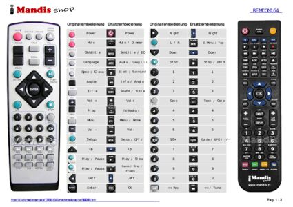 Ein Dokument ist enthalten, um die Verwendung der neuen Fernbedienung zu erleichtern, indem es die Tastenbelegung zeigt.