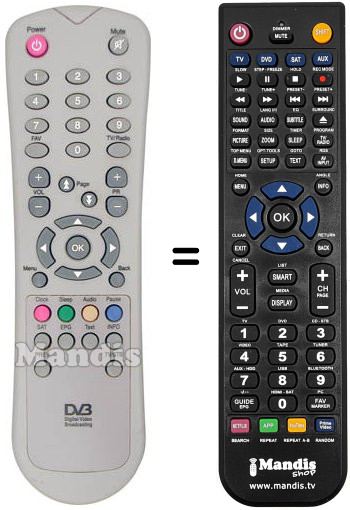 Fernbedienung, die das Original und die Gesamtheit seiner Funktionen, vollständig ersetzt. Es handelt sich jedoch nicht um eine Universalfernbedienung sondern um eine Fernbedienung die das Original ersetzt. Sie erhalten eine nach Einlegen der Batterien sofort einsatzbereite Fernbedienung. Jegliches Programmieren entfällt. Wir geben umfassende Garantie dafür, dass diese Fernbedienung alle Funktionen der Originalfernbedienung erfüllt.