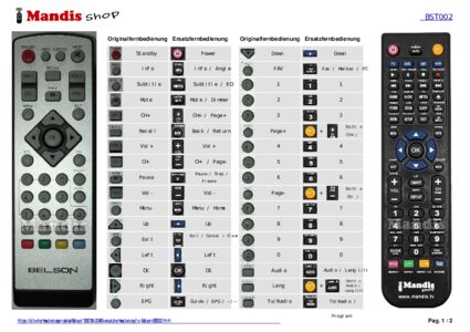 Ein Dokument ist enthalten, um die Verwendung der neuen Fernbedienung zu erleichtern, indem es die Tastenbelegung zeigt.