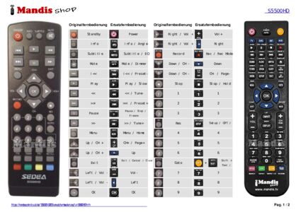 Diese Fernbedienung ersetzt Ihre S5500HD in vollem Umfang und bietet alle Funktionen des Originals.