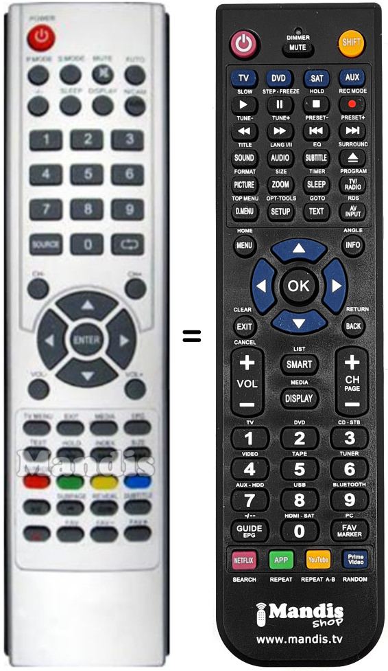 Es handelt sich jedoch nicht um eine Universalfernbedienung sondern um eine Fernbedienung die das Original ersetzt.