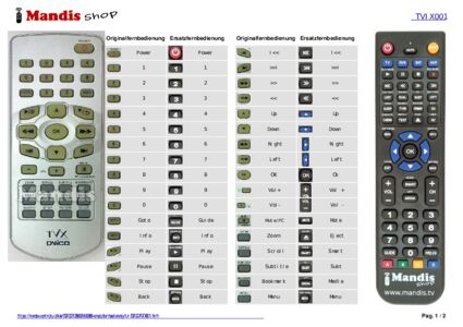 Diese Fernbedienung ersetzt Ihre TVIX001 in vollem Umfang und bietet alle Funktionen des Originals.