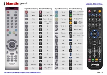 Ein Dokument ist enthalten, um die Verwendung der neuen Fernbedienung zu erleichtern, indem es die Tastenbelegung zeigt.