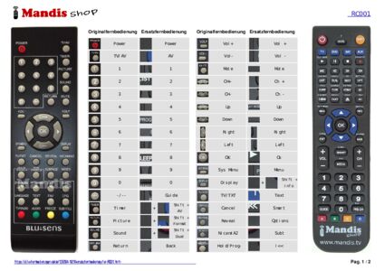 Ein Dokument ist enthalten, um die Verwendung der neuen Fernbedienung zu erleichtern, indem es die Tastenbelegung zeigt.