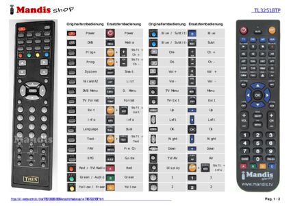 Ein Dokument ist enthalten, um die Verwendung der neuen Fernbedienung zu erleichtern, indem es die Tastenbelegung zeigt.