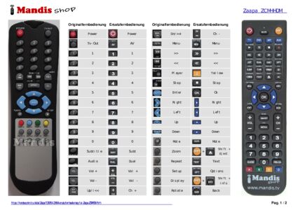 Ein Dokument ist enthalten, um die Verwendung der neuen Fernbedienung zu erleichtern, indem es die Tastenbelegung zeigt.