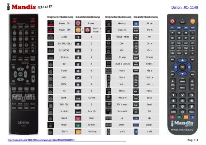 Ein Dokument ist enthalten, um die Verwendung der neuen Fernbedienung zu erleichtern, indem es die Tastenbelegung zeigt.
