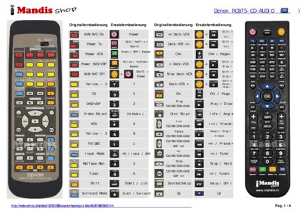 Ein Dokument ist enthalten, um die Verwendung der neuen Fernbedienung zu erleichtern, indem es die Tastenbelegung zeigt.