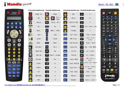Ein Dokument ist enthalten, um die Verwendung der neuen Fernbedienung zu erleichtern, indem es die Tastenbelegung zeigt.