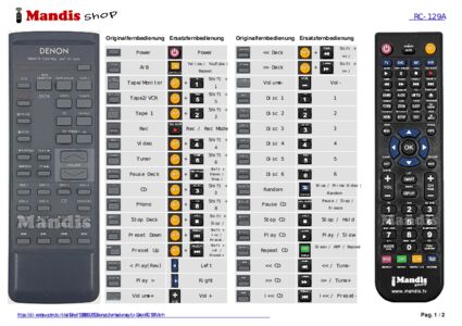 Diese Fernbedienung ersetzt Ihre RC 129A in vollem Umfang und bietet alle Funktionen des Originals.